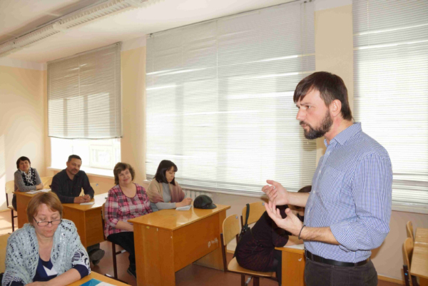 Работу секции учителей английского языка курировала Ирина Ларионова, один из авторов УМК по английскому языку, старший преподаватель кафедры филологического образования Академии постдипломного педагогического образования (г. Санкт-Петербург). Собравшиеся педагоги с интересом рассматривали предложенные возможности УМК «Английский язык» издательства «Русское слово» для подготовки к ОГЭ (ГИА) и ЕГЭ.