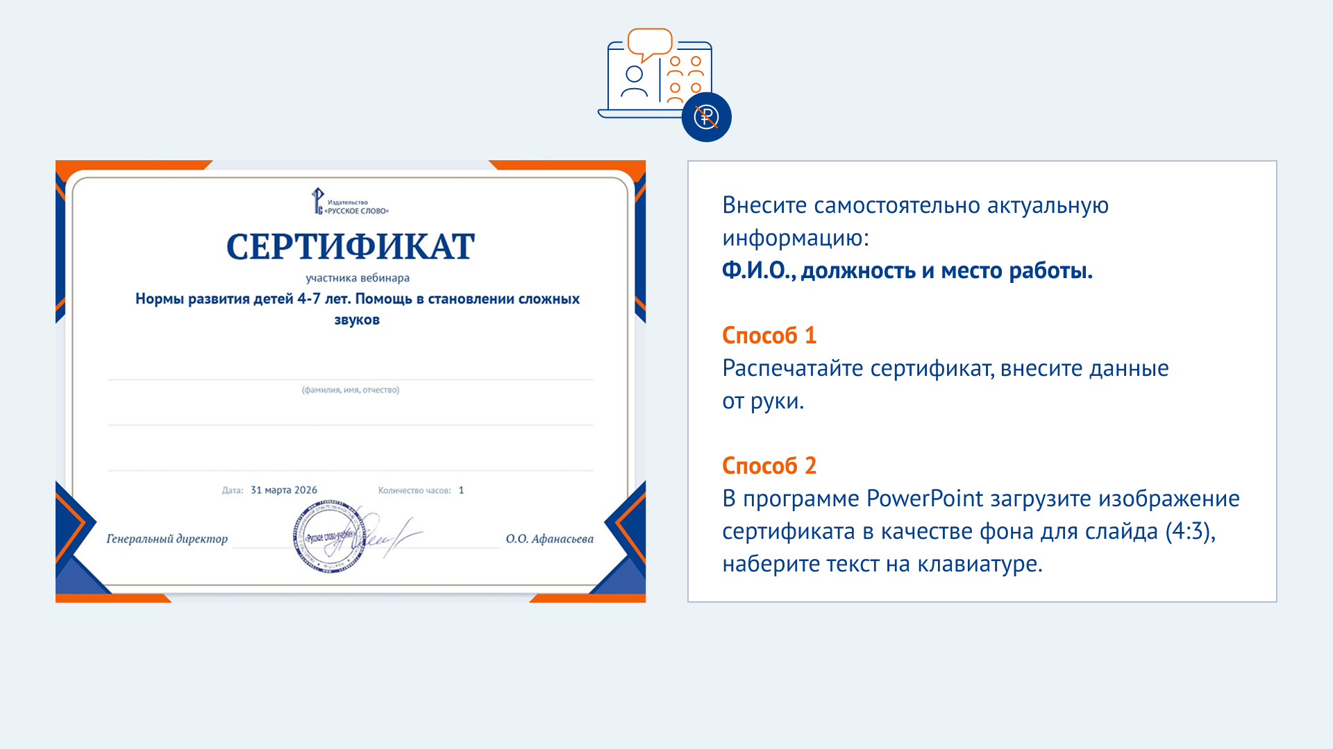 По итогам каждого вебинара издательства «Русское слово» участники получают специальные сертификаты.